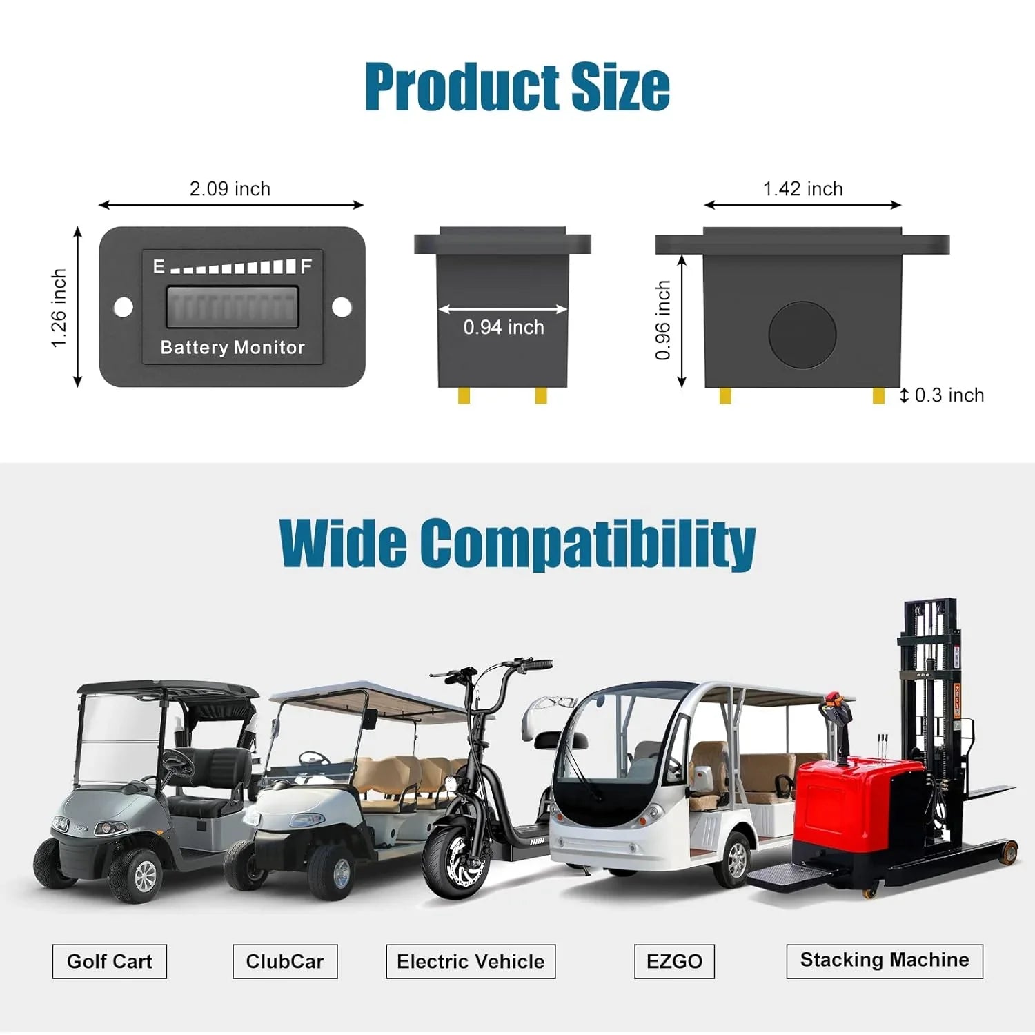 OBDResource BM210 Battery Monitor 12v 24v 36v 48v 60v 72v Adjustable Fit Golf Cars