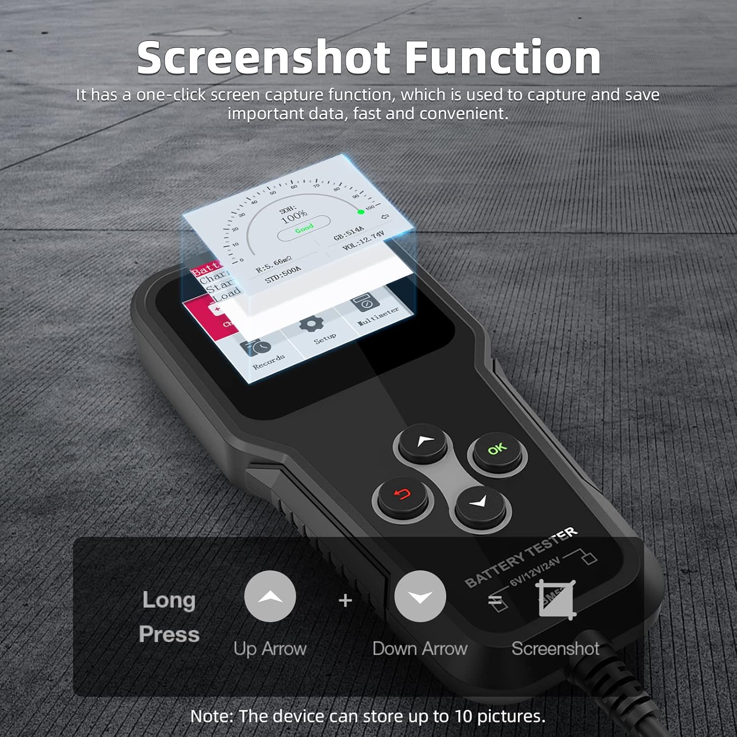 100 - 2000 CCA Testing Range: Supports all major battery types including Regular Flooded, AGM Flat Plate, AGM Spiral, GEL, and EFB.