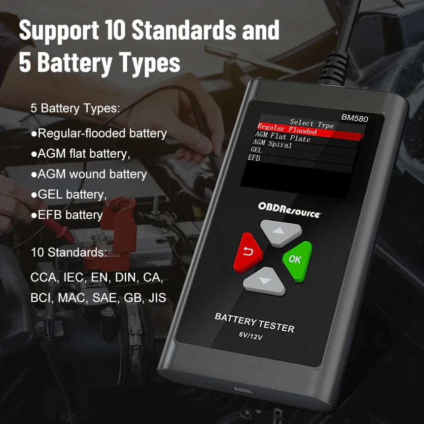 Take your automotive diagnostics to the professional tier with the OBDResource BM580. As the flagship model in the BM series, the BM580 is engineered for mechanics and car enthusiasts who demand more than just a "Good/Bad" reading. Featuring a large 2.4-inch color screen and advanced data logging capabilities, it is the ultimate workstation for 6V and 12V battery health, cranking, and charging system analysis.