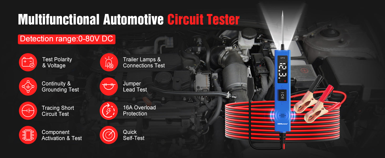 OBDResource CP10 Power Probe 6V 30V - Professional Automotive Circuit Tester with OLED Display & Component Activation Tool for Cars & Trucks