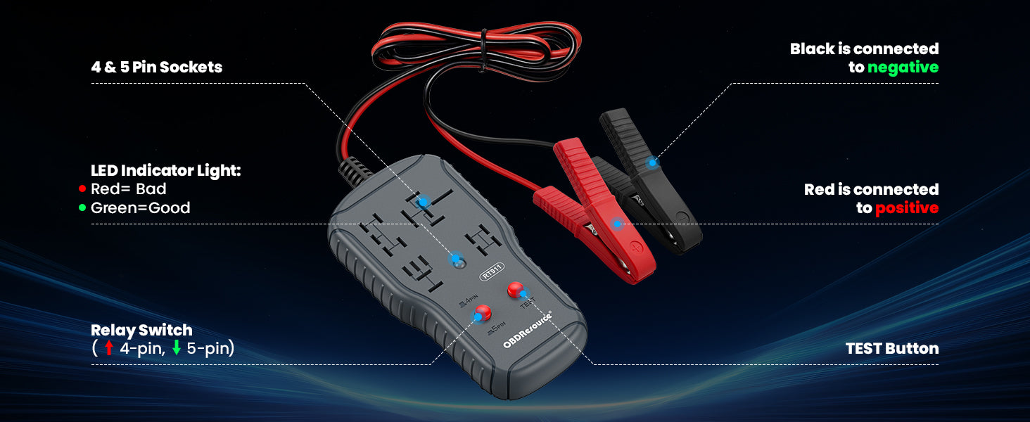 OBDResource RT911 Professional 12V/24V Automotive Relay Tester – Fast Relay Function Check & LED Indicator Diagnostic Tool