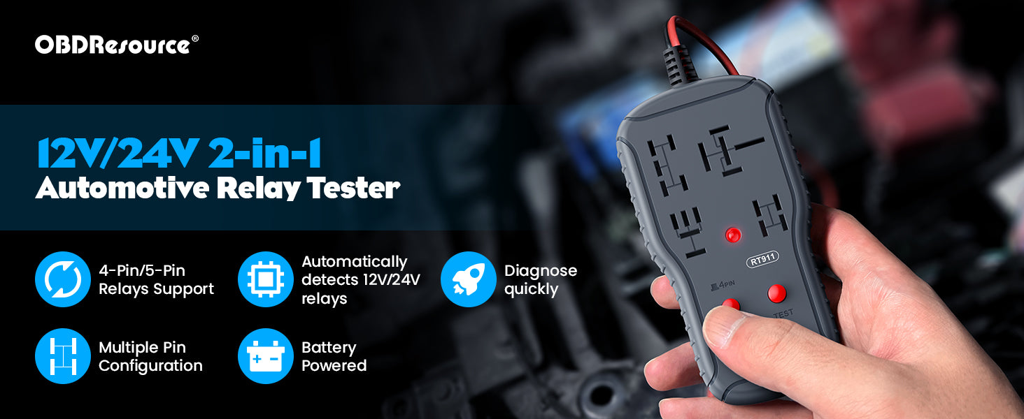 The OBDResource RT911 Professional Relay Tester is a purpose-built diagnostic tool designed to quickly and accurately test automotive relays. Supporting both 12V and 24V relay systems, it allows technicians to verify relay functionality in seconds without guesswork or complex wiring.