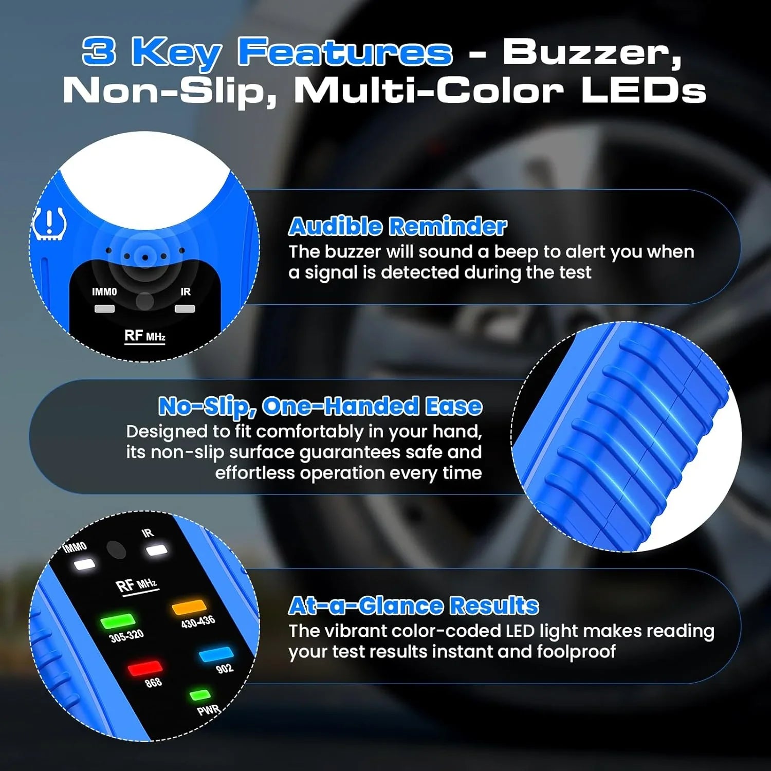 The instant visual feedback allows fast signal recognition, making operation simpler and more reliable than traditional TPMS reset tools.